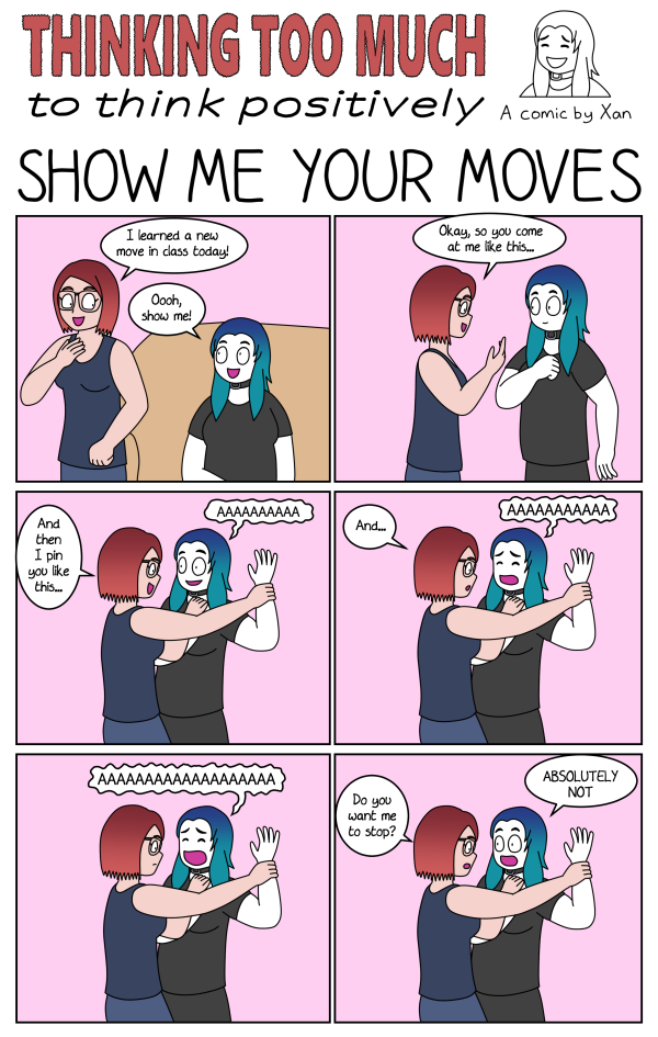 I promise I’m having fun, this is just the sound I always make when very gently subjected to martial arts moves at one tenth of normal speed